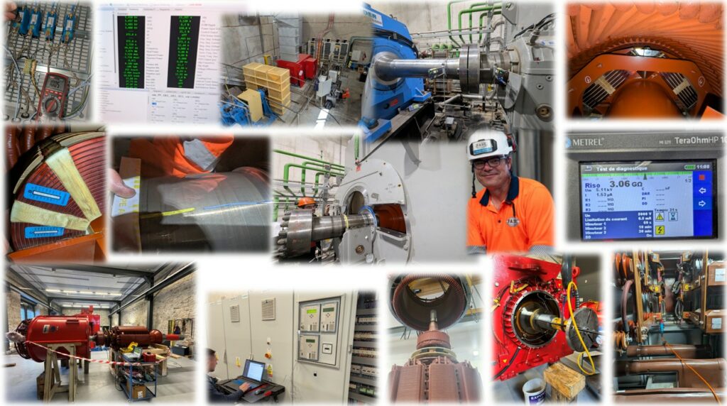 – Mise en Service d’alternateurs synchrones, incluant les centrales de lubrification, les capteurs de vibrations, les régulateurs de tension toutes marques (NIDEC/LEROY-SOMER, BASLER, ABB, AVK….)
